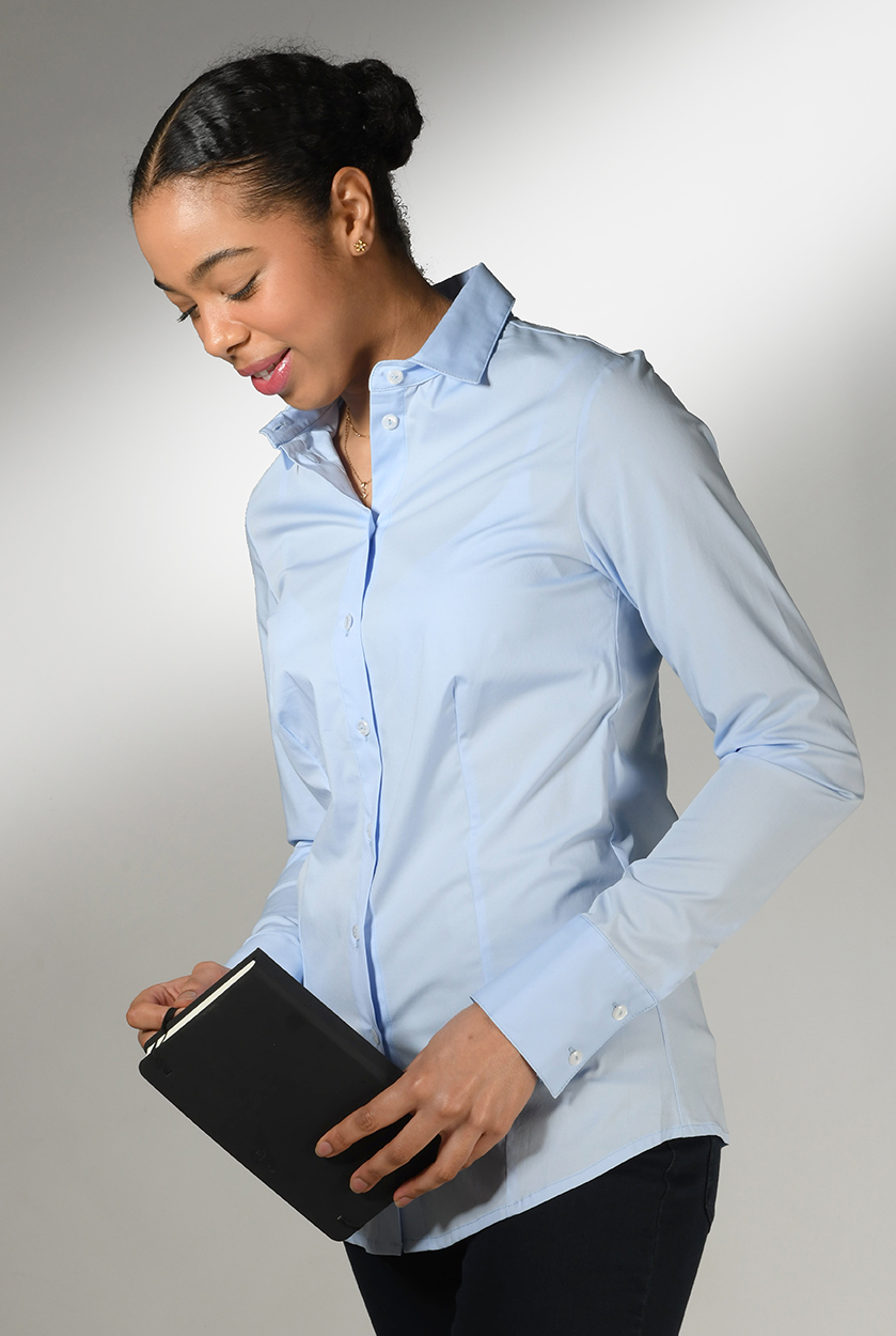 Langarm Basic-Bluse aus Stretchbaumwolle in 4 Farben