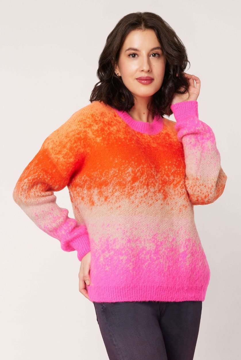 Flauschiger Strickpullover in leuchtenden Farben.