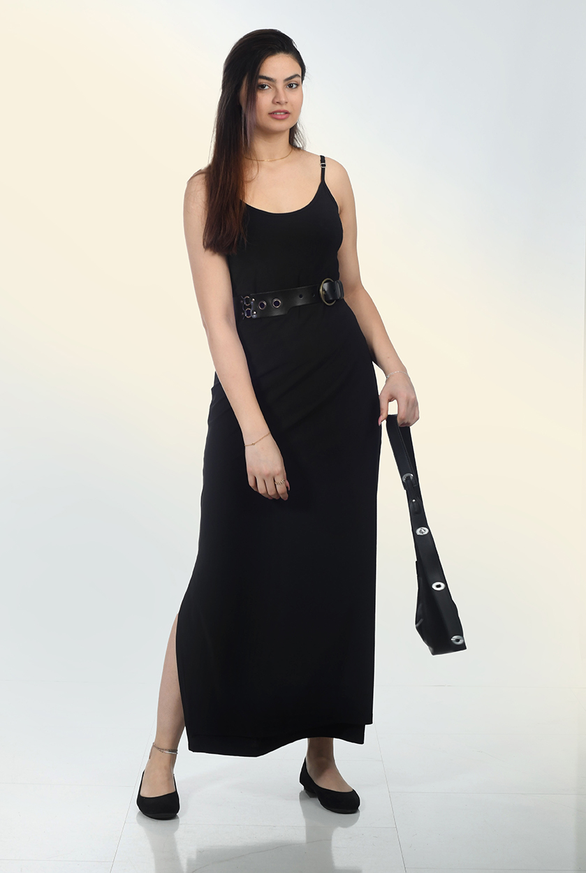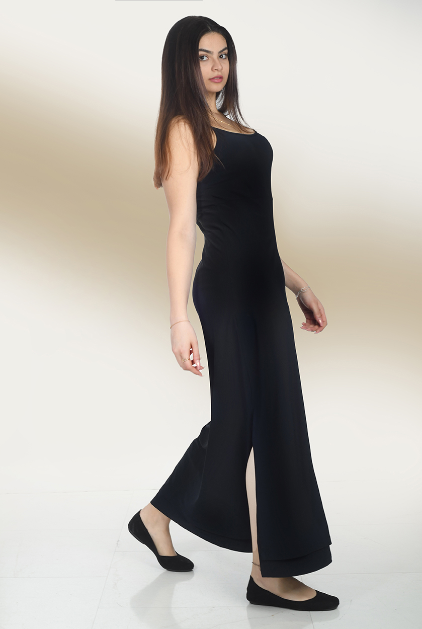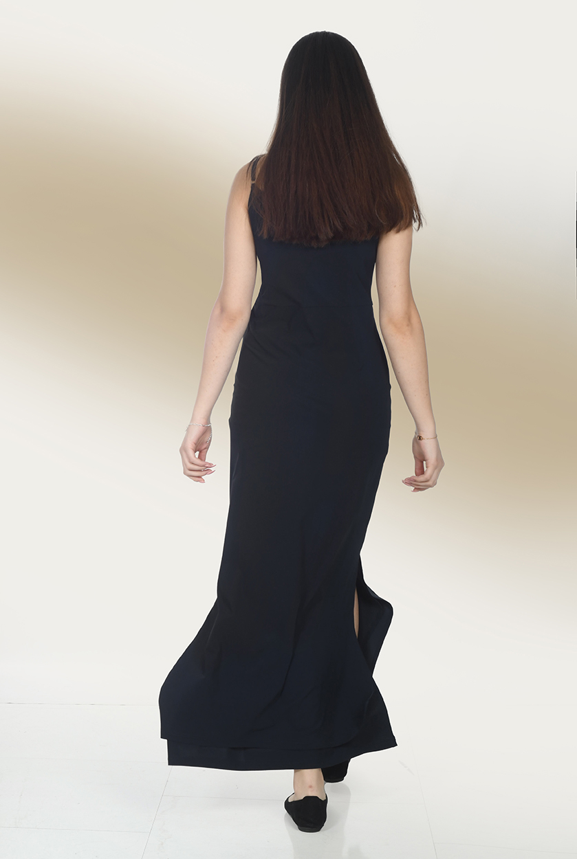 Schlichtes Maxikleid SPORTY CHIC Light in 2 Farben. Doppellagig. Verstellbare Träger. Unser Model Atena ist 1,80 m groß und trägt die Größe 38.